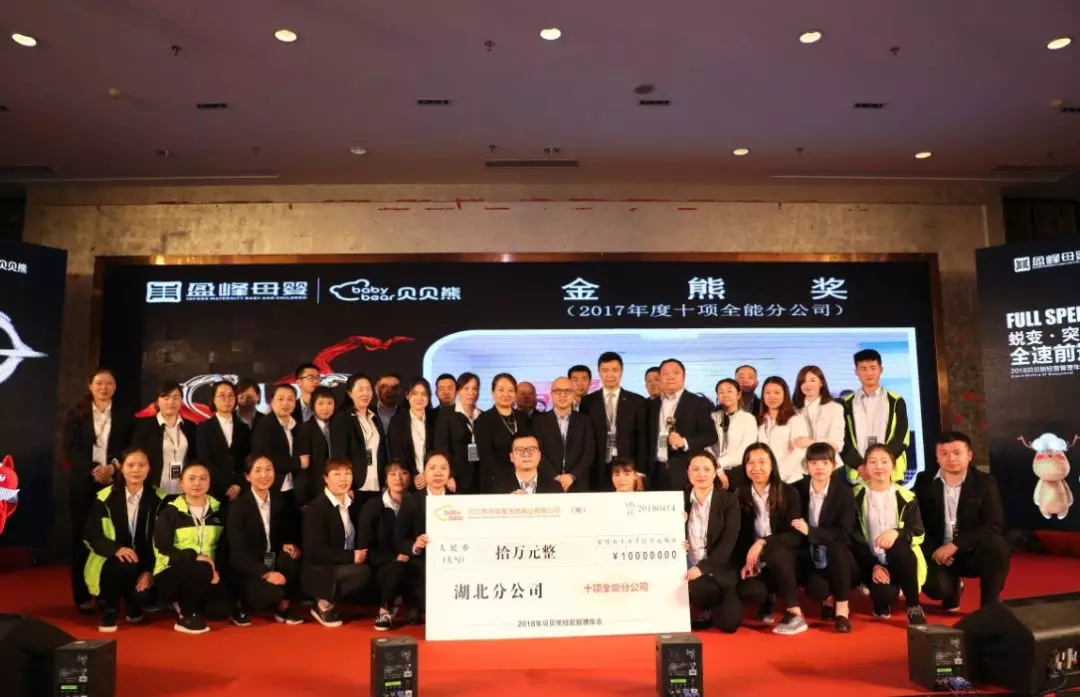 過去的2017年里,公司涌現出一大批優秀管理者及員工,他們在自己的工作崗位上、領域里施展著才能,有著突出的表現。現場對讀書分享會組織—智熊獎;內訓師—博熊獎;促銷員—助熊獎;年度全國十佳育嬰師、十佳泳療師、十佳員工—精熊獎; 店長—棒熊獎;區域經理—帥熊獎;雙品類達成—猛熊獎;創新項目—才熊獎;十項全能分公司—金熊獎在內的十一個大獎,數十位優秀員工進行了表彰。他們是真正的英雄,時間是公平的,唯有加倍努力才能獲得成功。業績導向,以奮斗者為本的激勵模式仍然將是2018年的主旋律!